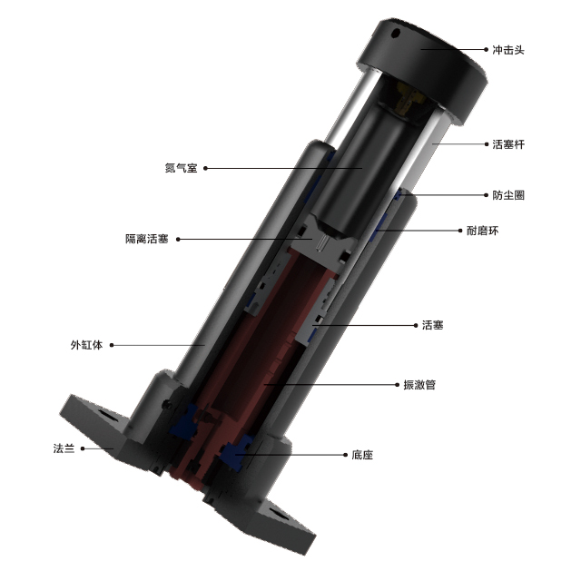 3. 請檢查活塞桿是否完全復位,其回復后活塞桿的尺寸參考產品手冊。如活塞桿未完全復位,請給氮氣腔進行充氣加壓。